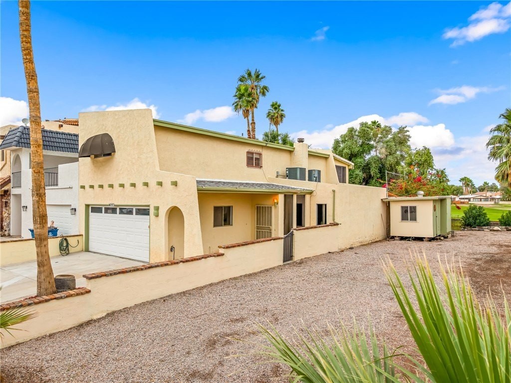Rare Double-Lot Golf Course Home With No HOA! Welcome to a truly special opportunity to own a golf course property in the heart of Bullhead City, AZ, conveniently located close to restaurants, shopping and casino entertainment. Situated in one of the area's most desirable neighborhoods - Country Club Manor, without the restrictions of an HOA!! This home is unique because it offers an additional lot right next to the house! Use this oversized double lot for parking your river and desert toys. The 30-amp RV hookup and storage shed on the extra lot is great for overnight RV guests. Inside, you'll find a warm and inviting living room featuring a charming pot belly fireplace, a spacious family room ideal for entertaining, and even a pool table-perfect for gatherings and game nights. The layout includes 2 bedrooms plus a den upstairs that can easily serve as a 3rd bedroom, office, workout area or hobby space. The oversized primary suite showcases breathtaking golf course views-your own peaceful retreat after a long day. Step outside to the private backyard patio with direct gated access to the course, ideal for morning walks or watching the sunset over the fairway. Enjoy the freedom of no HOA, with the added bonus of optional membership to the community pool for a small annual fee. The nearby clubhouse restaurant provides convenience, entertainment, and a sense of community. This property offers the perfect blend of comfort, privacy, and unbeatable location. Don't miss this rare chance to enjoy golf course living without the rules-your dream home is waiting!